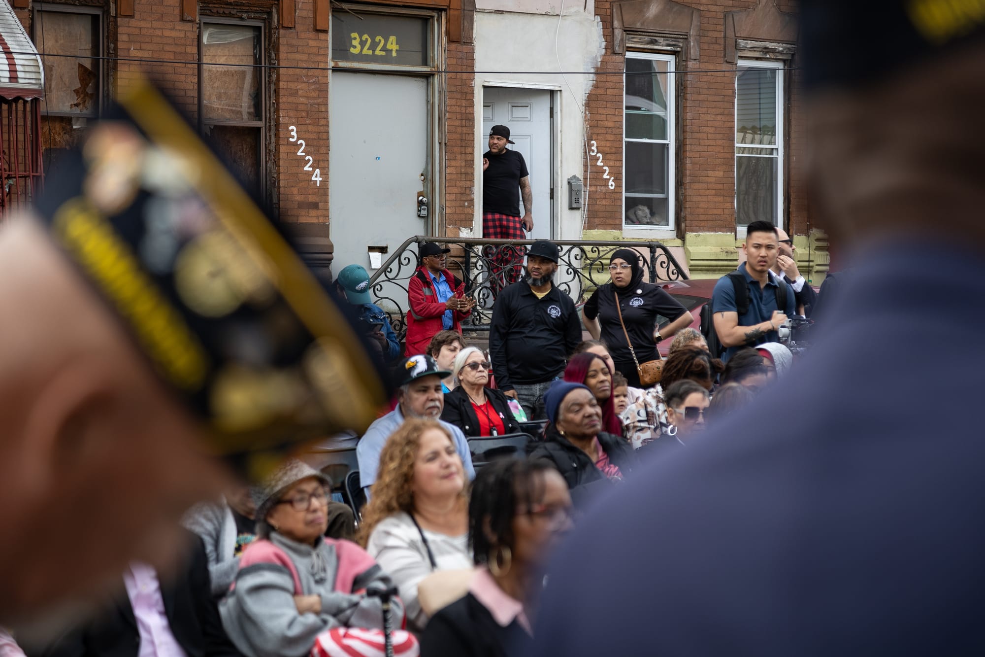 Community members, organizers and city leaders gather to listen to speakers during the ribbon-cutting celebration at the newly renovated Rivera Recreation Center and Mann Older Adult Center in Fairhill on April 4, 2025. (Photo by Solmaira Valerio)