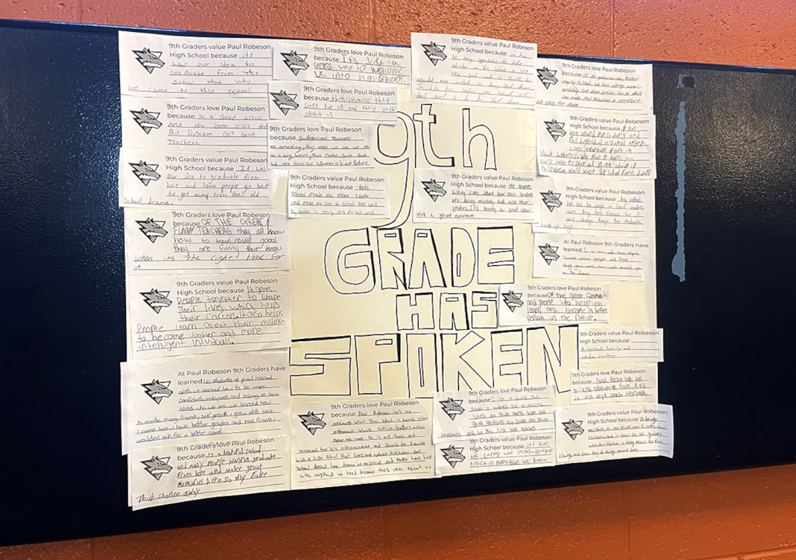 Paul Robeson High School students and families said during a community meeting on Saturday, Feb. 7, 2026, that the school's small size and tight-knit community make it special. (Rebecca Redelmeier / Chalkbeat)