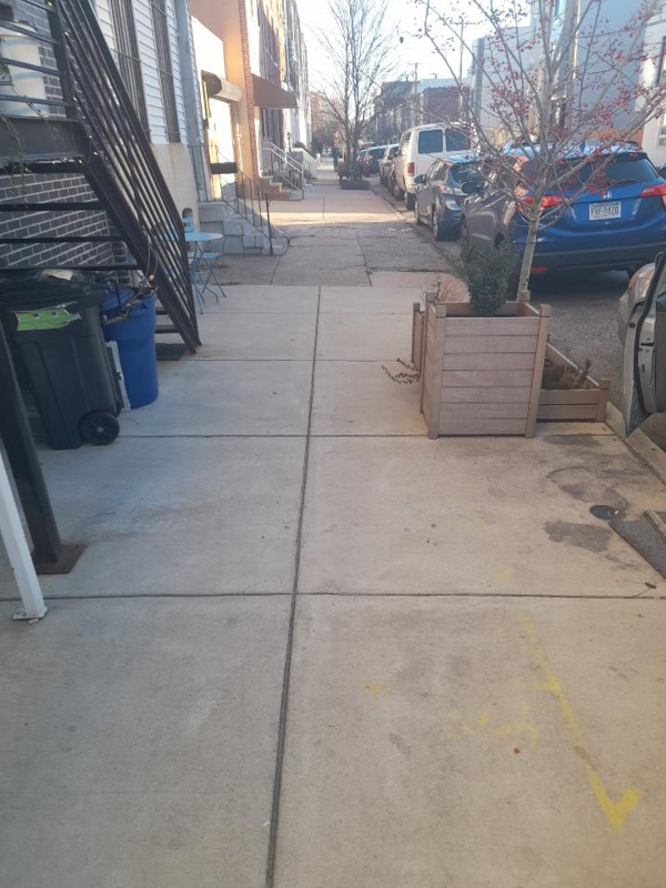 These photographs above compare the sidewalk maintenance on the north and south side of Lehigh Avenue along Emerald Street. As seen in the top photograph, some sidewalks on the northern side are so poorly maintained that residents have to walk in the street to avoid potholes. In the second photograph, we can see how the southern side of Lehigh Avenue is well maintained.