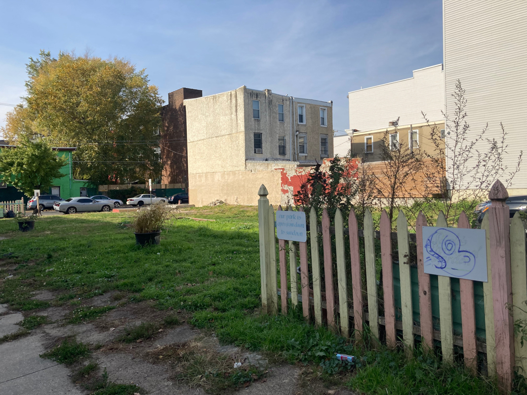 The photographs above show community spaces near Lehigh Avenue. In the top photograph, the space south of Lehigh has a painted fence and flower pots, and the other space north of Lehigh (second photograph) has a half-built, broken-down fence and a beautiful tree.