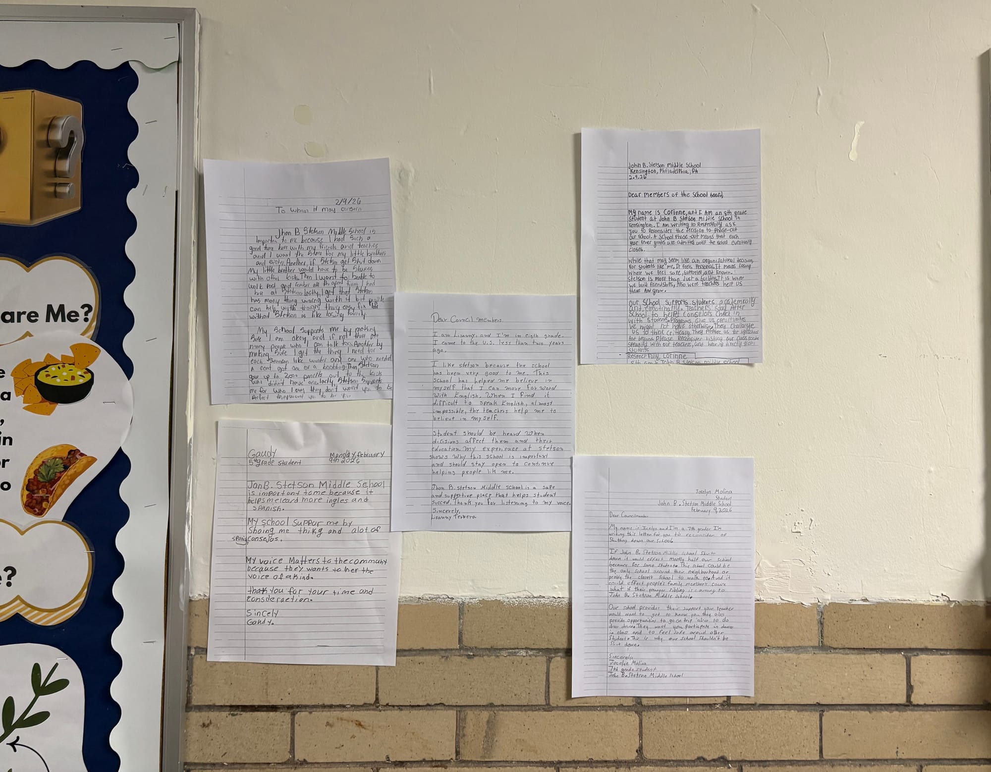 Students' love letters to Stetson Middle School decorated the school's halls ahead of a district meeting to collect feedback on its plan to close the school on Thursday, February 12, 2026. (Photo by Emily Rizzo)