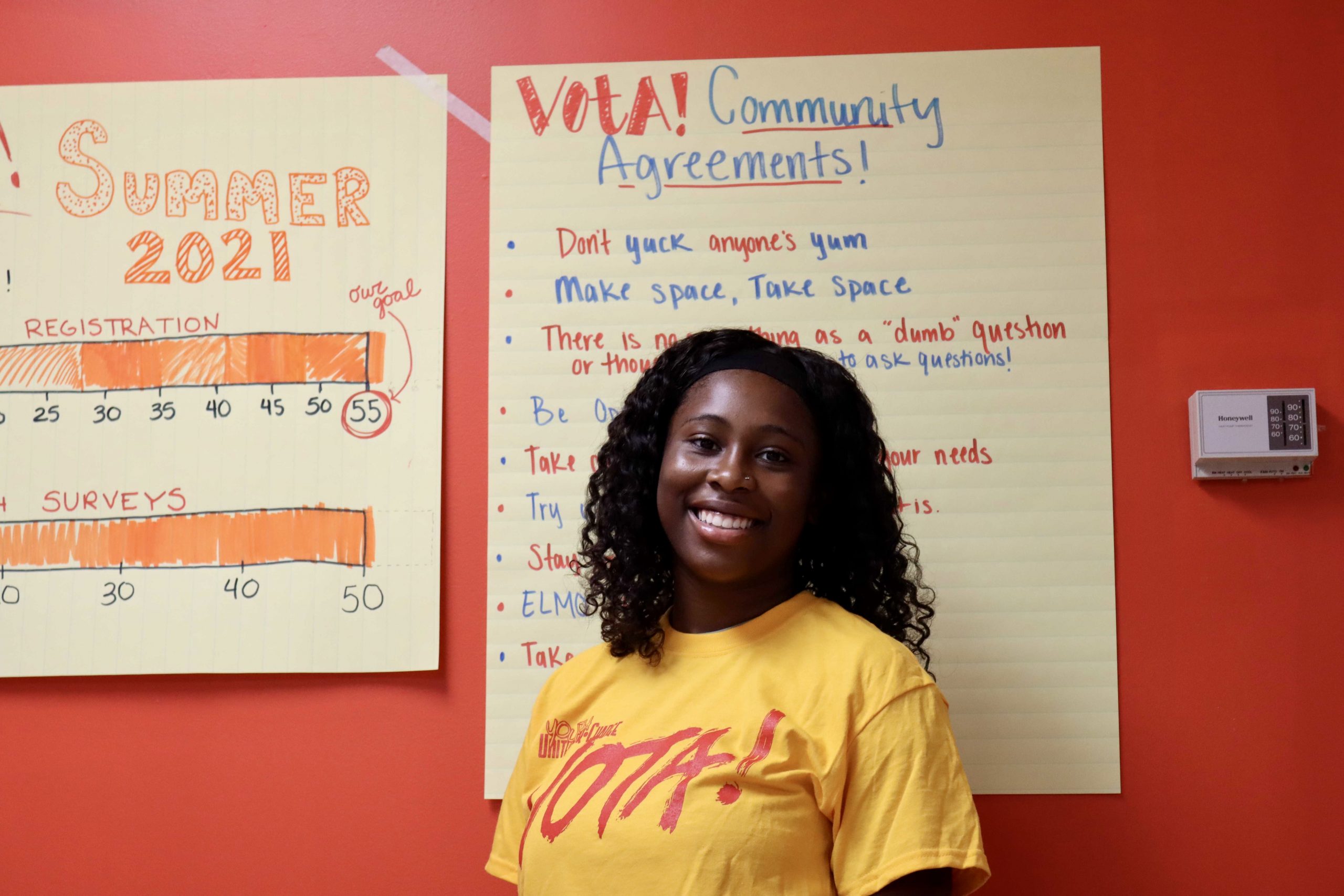 McManus (left) and Ellis (right) posing together at Youth United for Change offices. (Photo by Khysir Carter)